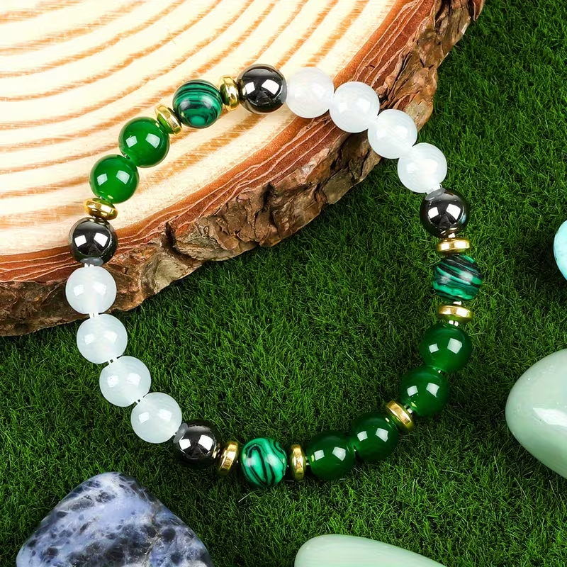 Zeleni kristal - ahat prinaša harmonijo, ravnovesje in občutek nežne podpore. Deluje pomirjujoče na srce in živčni sistem ter nas spominja, da je spuščanje lahko mehko, naravno in brez napora.