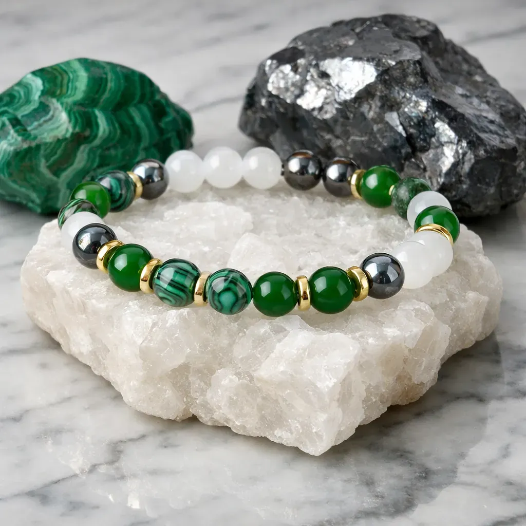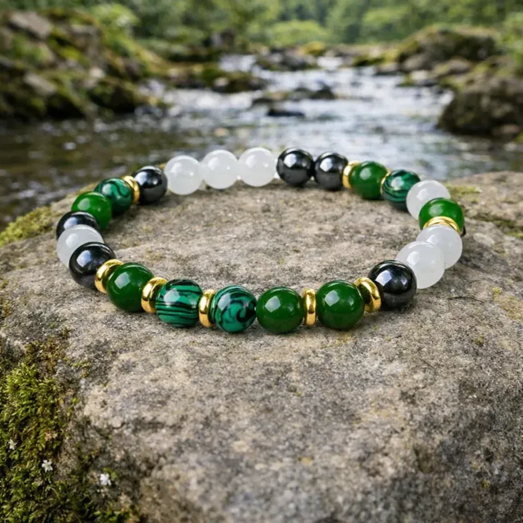Malahit, kamen globoke transformacije, nežno, a vztrajno prinaša na površje tisto, kar je pripravljeno oditi. Pomaga pri spuščanju starih čustvenih vzorcev, strahov in potlačenih skrbi ter nas uči, da je sprememba naraven del rasti. Njegova zelena energija zdravi srčni prostor in spodbuja notranjo iskrenost do sebe.