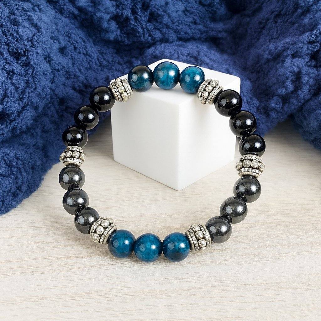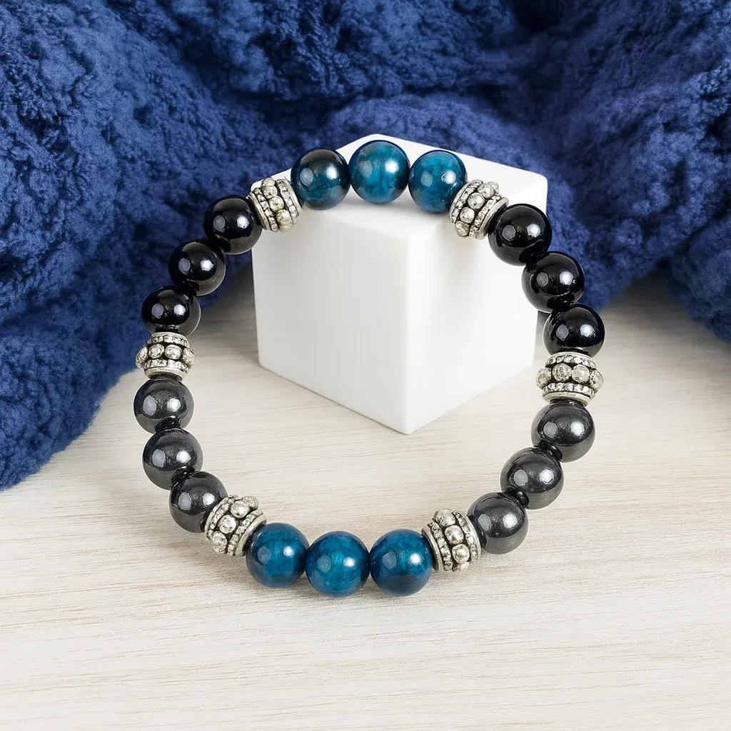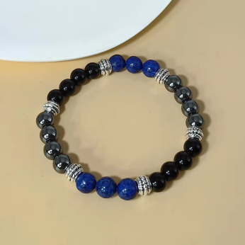 Ta zapestnica ne ščiti le vašega duha in uma, temveč tudi vašo ljubezen – tisto iskreno, globoko vez, ki jo želite ohraniti čisto in močno. Lapis lazuli odpira srce za iskreno komunikacijo, ki je temelj vsake resnične ljubezni. Hematit vas prizemljuje v resnico odnosa in pomaga ostati zvest sebi, ne glede na zunanje vplive. Obsidian pa varuje pred ljubosumnimi pogledi, zavistjo in energijami, ki skušajo v odnos vnesti razdor ali nezaupanje. V tej kombinaciji kristalov je vtkana subtilna zaščita, ki krepi vezi med zaljubljenima in ohranja svetost odnosa pred zunanjim svetom.