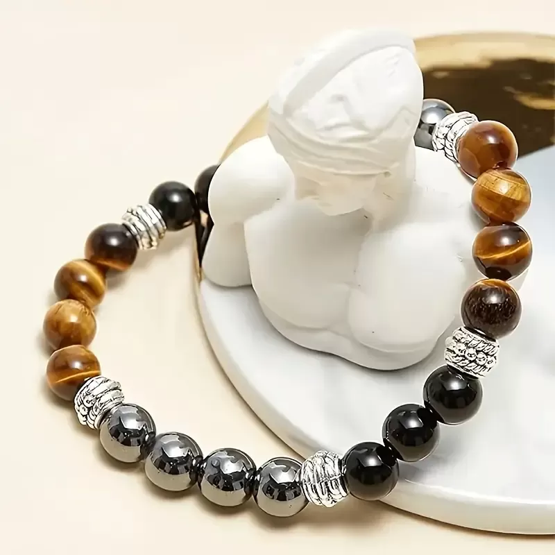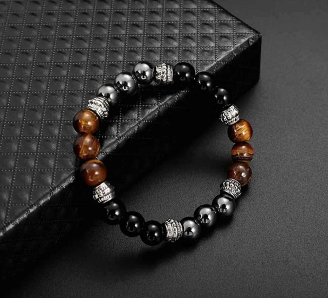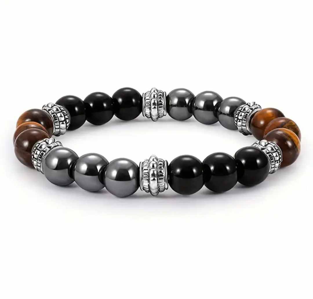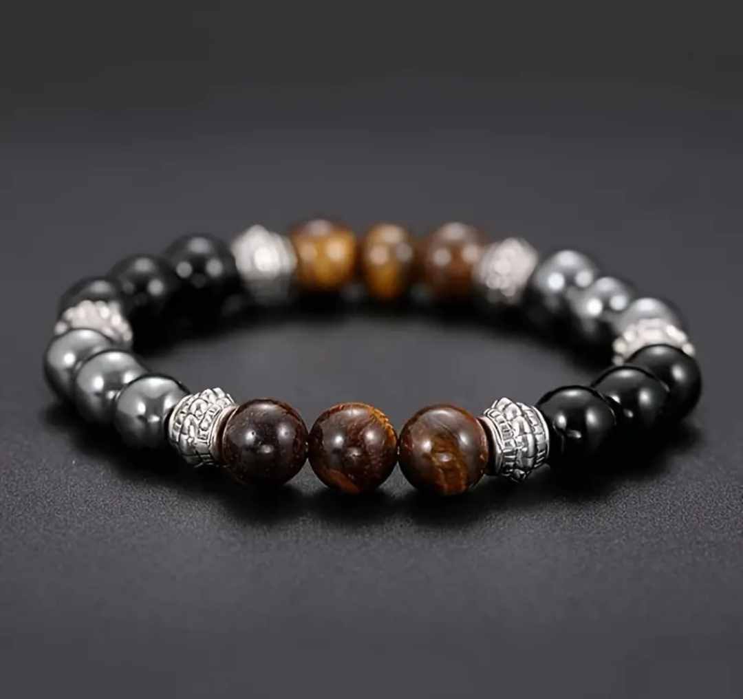Zapestnica "Trikratna zaščita" je močan duhovni talisman, oblikovan z namenom, da vas varuje in podpira na vseh ravneh vašega življenja. Združuje tri izjemno močne kristale – tigrovo oko, hematit in obsidian – ki skupaj tvorijo močno energijsko zaščito. Vsak od teh kristalov prinaša svoje edinstvene lastnosti, v zapestnici pa se prepletajo v popoln ščit pred negativnimi vplivi.