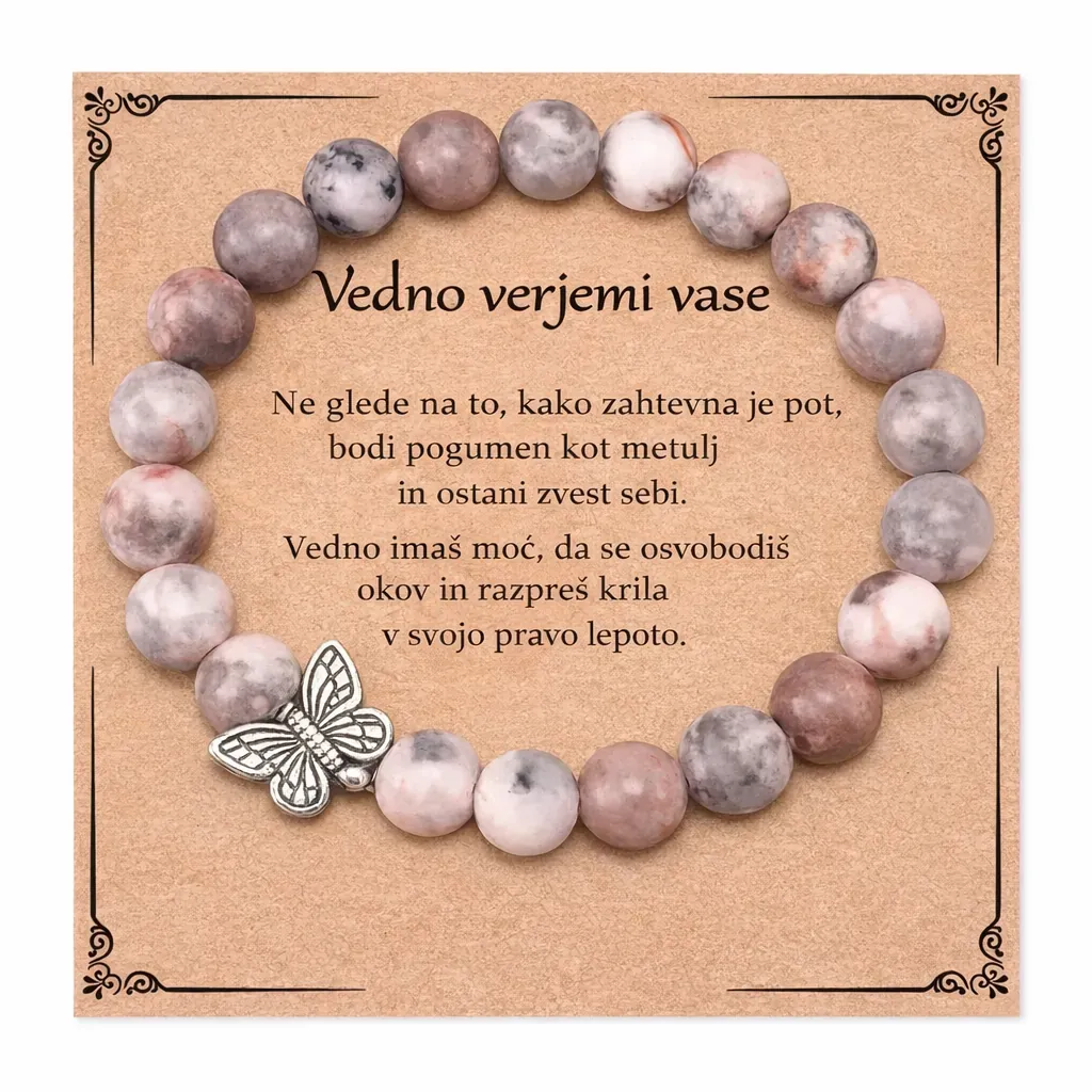 Ob nakupu vsake zapestnice "Verjemi vase in svojo moč" prejmete tudi unikatno, edinstveno pismo, posebej namenjeno nositelju zapestnice. To pismo je oblikovano z mislijo na vas in vam bo v oporo v trenutkih, ko se soočate z izzivi. Je opomnik, da nikoli niste sami v svojih težkih obdobjih, in vas bo nežno vodilo skozi prehode v vašem življenju. Z navdihujočimi besedami vam bo pomagalo najti notranji mir, zaupanje vase in moč, da premostite vse ovire, ki vam stojijo na poti.