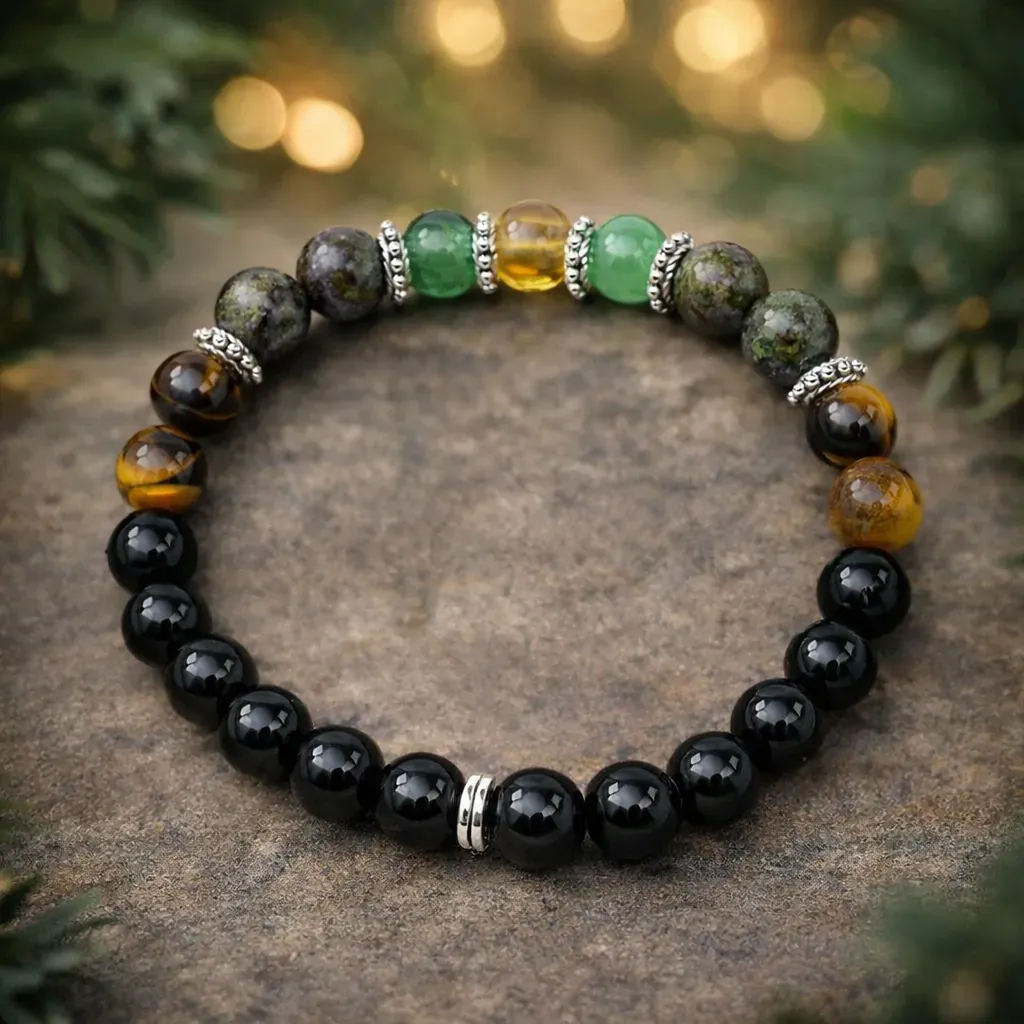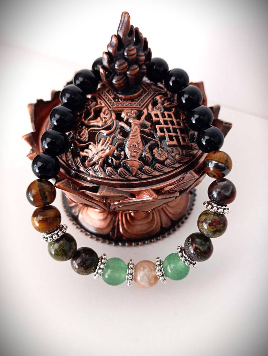 V tej zapestnici so skrbno izbrani kristali, ki nosijo svojo edinstveno energijo obnove in zdravljenja. Unakit, znan kot kamen preobrazbe, s svojimi nežnimi vibracijami pomaga raztapljati čustvene rane, ki so nastale zaradi brezveznih sporov in nesporazumov. Njegova energija spodbuja odpuščanje in notranjo rast, kar odpira prostor za obnovo izgubljene ljubezni. Aventurin, kamen sreče in svežih začetkov, nas opominja, da se vsak konec lahko spremeni v nov začetek. S svojo pozitivno vibracijo krepi zaupanje v prihodnost in nas spodbuja, da verjamemo, da se prava ljubezen vedno lahko vrne.