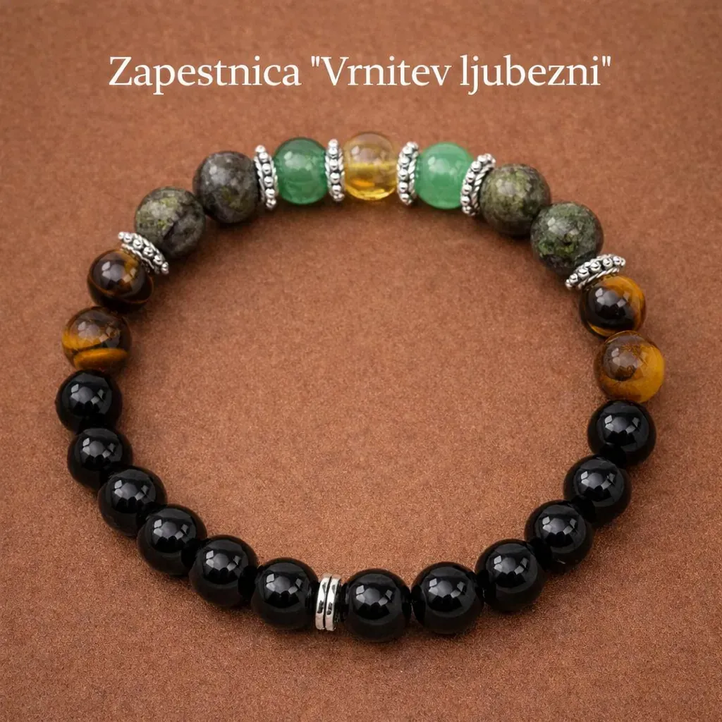 Zapestnica Vrnitev ljubezni nas opominja, da so preizkušnje in majhne nesoglasja le začasni koraki na poti do pravega čustvenega združenja. Če je ljubezen zares namenjena, se bo z močjo kristalov in z našim notranjim delom vedno znova vrnila, da nas obdari s toplino, varnostjo in obnovljenim navdihom.