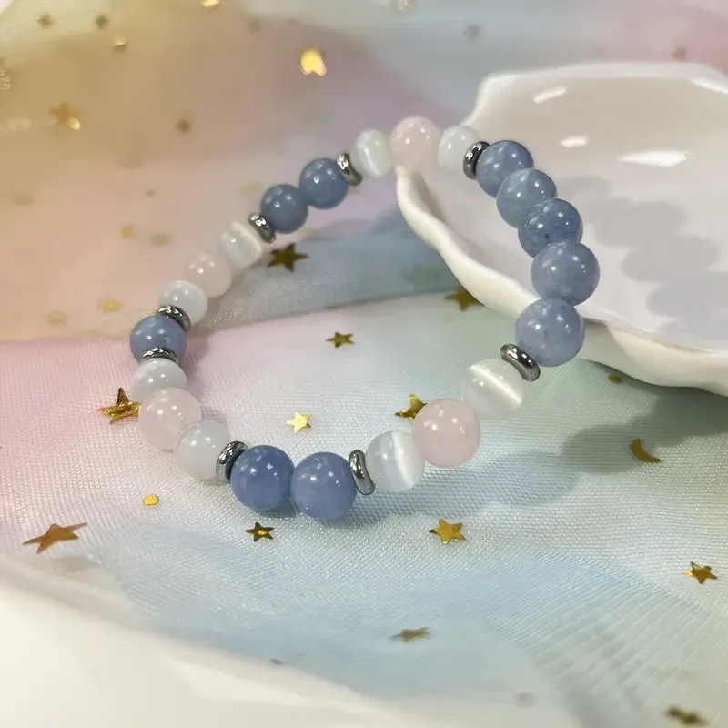 Zapestnica je izdelana iz 8 mm naravnih kristalov, nanizanih na kakovosten elastični trak, zato se prilagodi večini zapestij in omogoča udobno vsakodnevno nošenje.