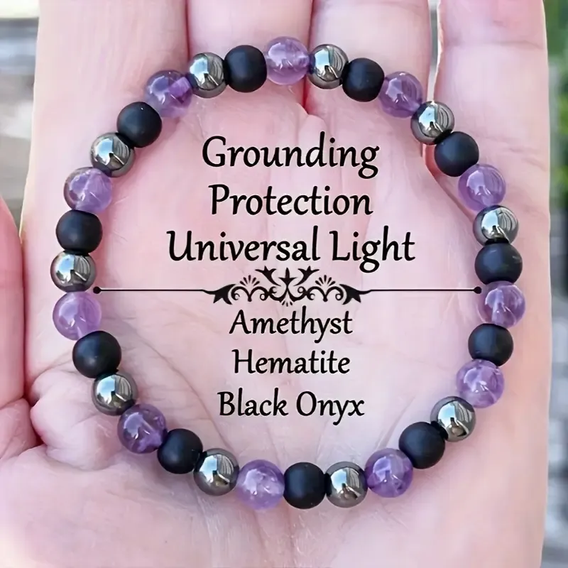 Izdelana je iz 6 mm naravnih kristalov ametista, hematita in črnega oniksa, ki v harmonični kombinaciji pomagajo uravnovesiti vaše energetsko polje. Zapestnica je prilagodljiva in nanizana na kakovosten elastični trak, zato se lepo prilega večini zapestij ter omogoča udobno in vsakodnevno nošenje.