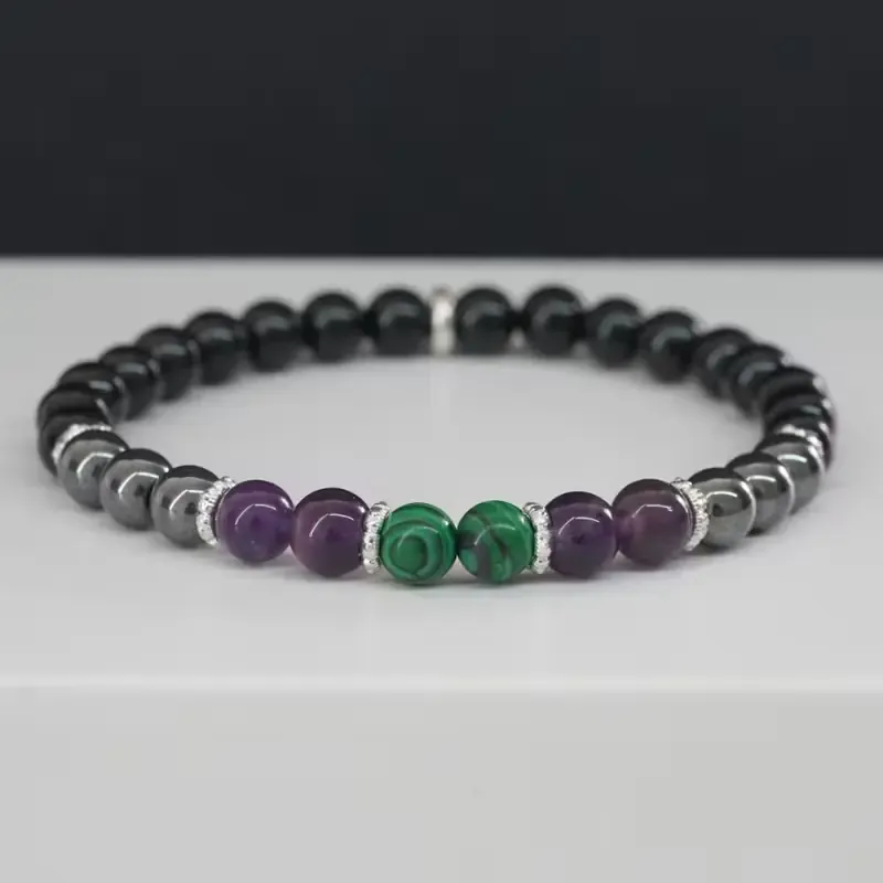 Malahit v zapestnico prinaša energijo čustvene preobrazbe. Je kamen, ki pomaga pri sproščanju potlačenih občutkov, starih čustvenih vzorcev in notranjih blokad. Njegova energija podpira nežne, a globoke spremembe ter pomaga, da se čustva uravnovesijo na naraven način. Malahit spodbuja zavedanje in sprejemanje, kar je ključno za občutek notranjega miru.