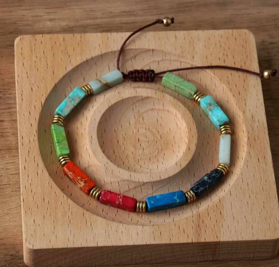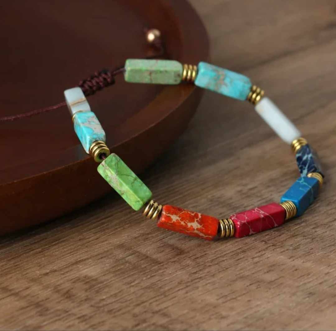 Ta zapestnica iz sedimentnih barvnih kamnov je most med dušo in naravo, simbol notranjega ravnovesja in harmonije. Vsak kamen, skrbno izbran in ročno nanizan, nosi v sebi zgodbo Zemlje, odmev večne modrosti narave in pretok energije, ki nas povezuje z univerzumom.