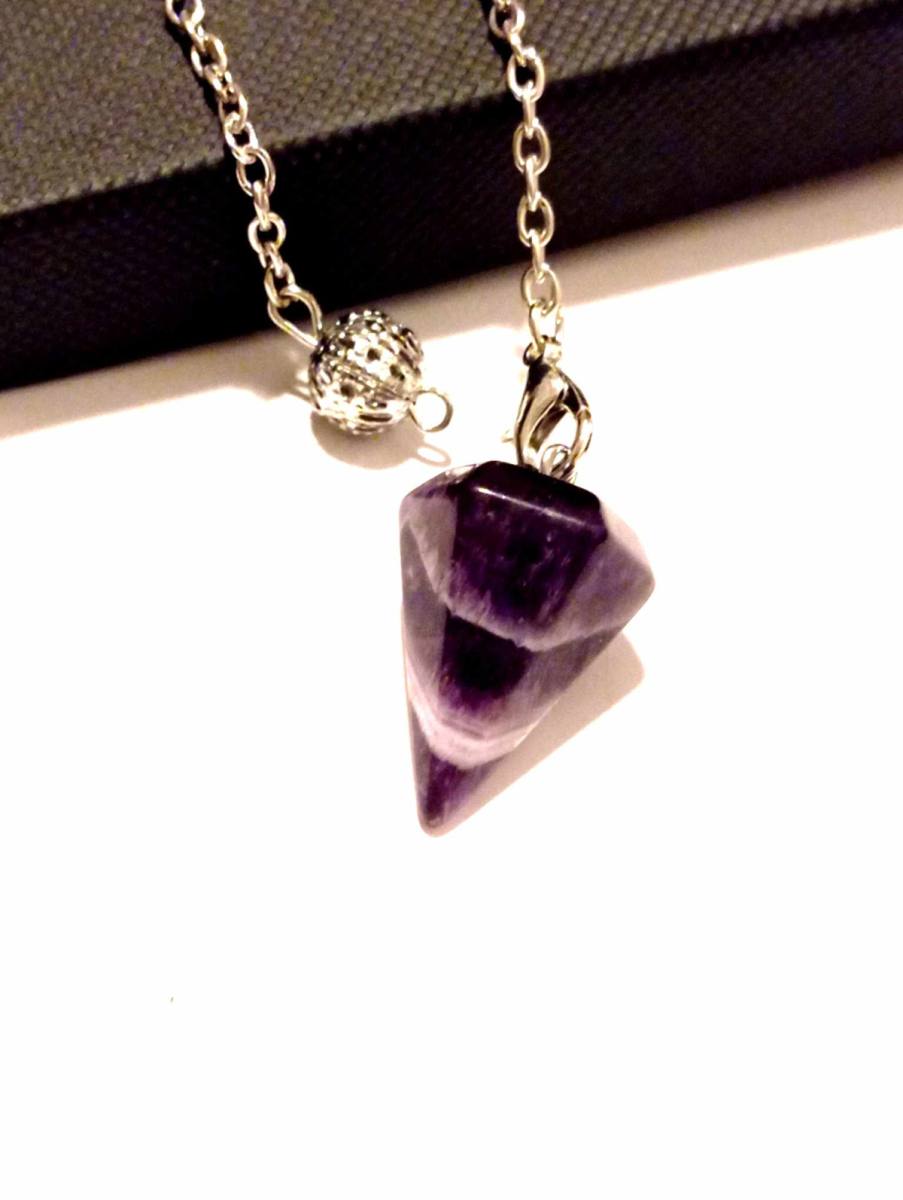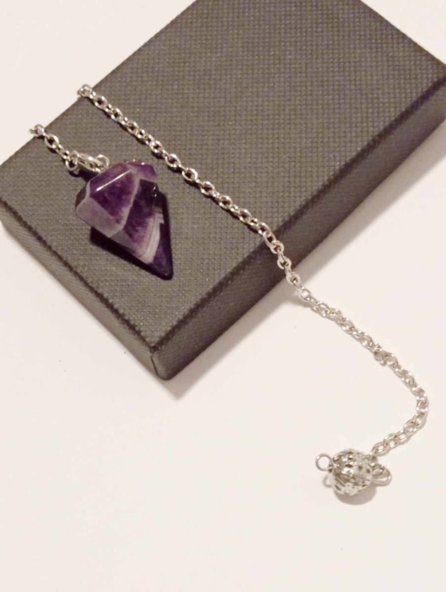 Ametist je kristal, ki že od nekdaj velja za simbol duhovne moči, notranje umirjenosti in zaščite. Njegova čudovita vijolična barva odseva globoko povezanost z višjimi dimenzijami ter prinaša energijo jasnosti in razsvetljenja. Ta kristal pomaga odpraviti dvome, umiriti um in omogočiti boljši dostop do lastne intuicije. Ko ga uporabljaš kot nihalo, ti pomaga prepoznati resnico, preseči iluzije in prejeti natančne odgovore iz svoje podzavesti ali duhovnega vodstva.