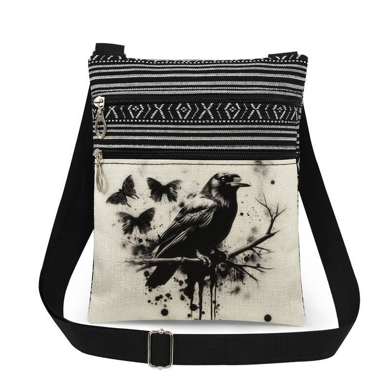Izdelana je iz kombinacije tkane bombažne ali akrilne tkanine, kar ji daje prijeten občutek in estetski videz. Nastavljiv pas omogoča prilagoditev dolžine, tako da jo lahko nosite čez ramo ali križno, kar je še posebej priročno med sprehodi ali potovanji.