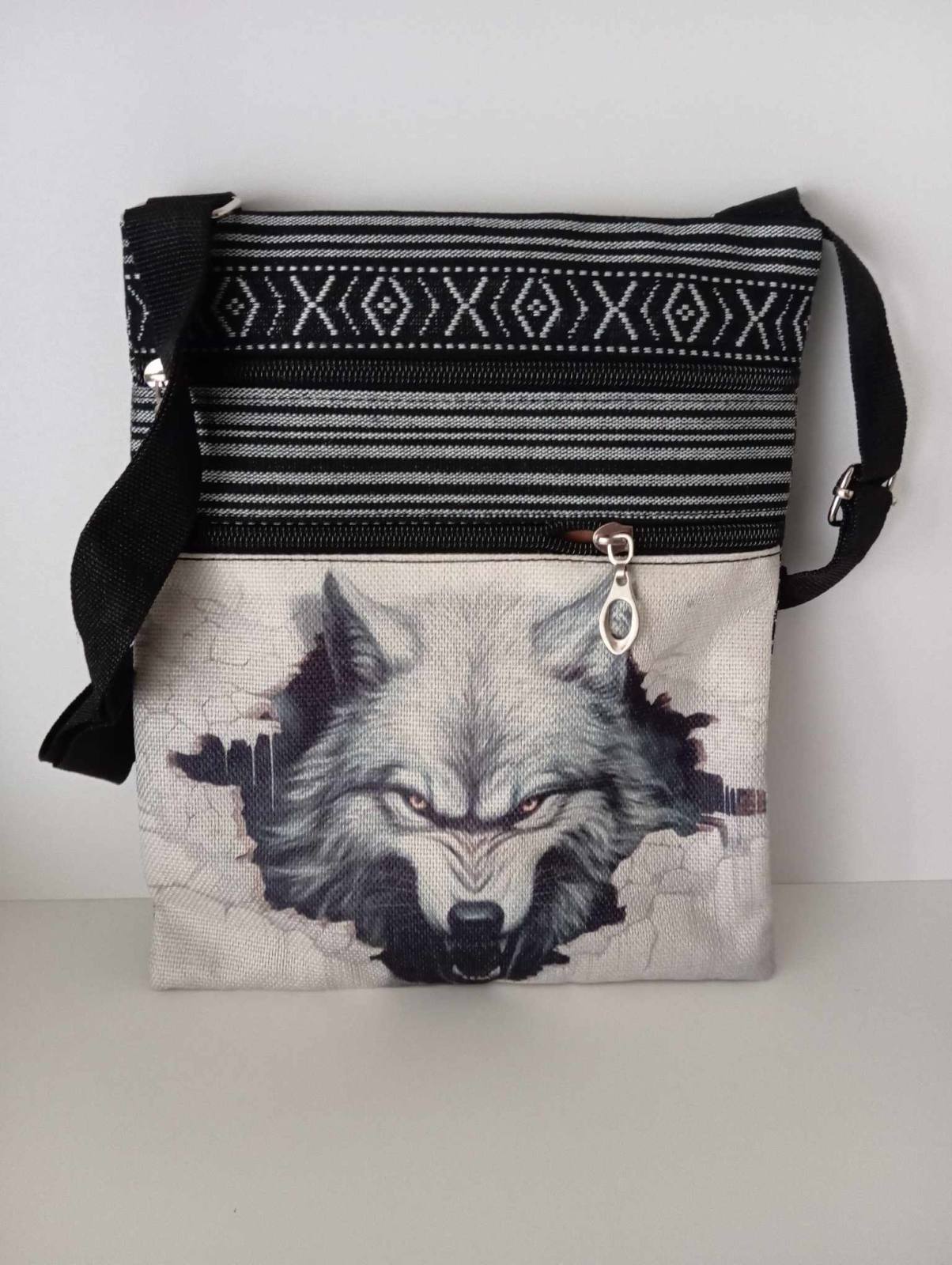 Izdelana je iz kombinacije tkane bombažne ali akrilne tkanine, kar ji daje prijeten občutek in estetski videz. Nastavljiv pas omogoča prilagoditev dolžine, tako da jo lahko nosite čez ramo ali križno, kar je še posebej priročno med sprehodi ali potovanji.